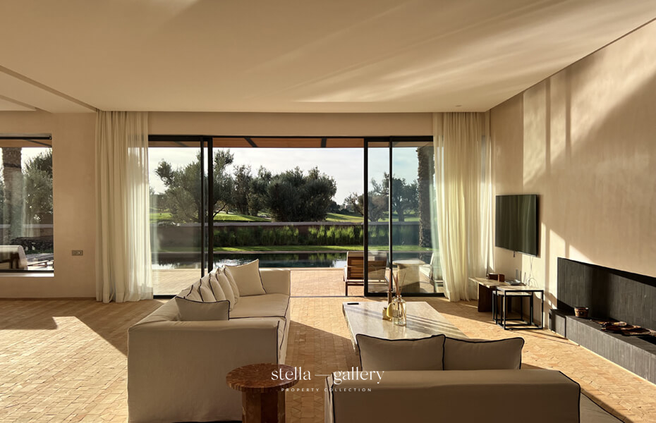 Cette villa pleine de charme saura vous séduire par ses multiples espaces de vie, pensés pour profiter pleinement du climat exceptionnel de Marrakech. Située en première ligne de golf du Domaine Royal Palm Marrakech, la villa Dar TC s’étend sur un terrain de 1 600 m² et s’articule autour de larges ouvertures offrant une vue imprenable sur le jardin et le golf.