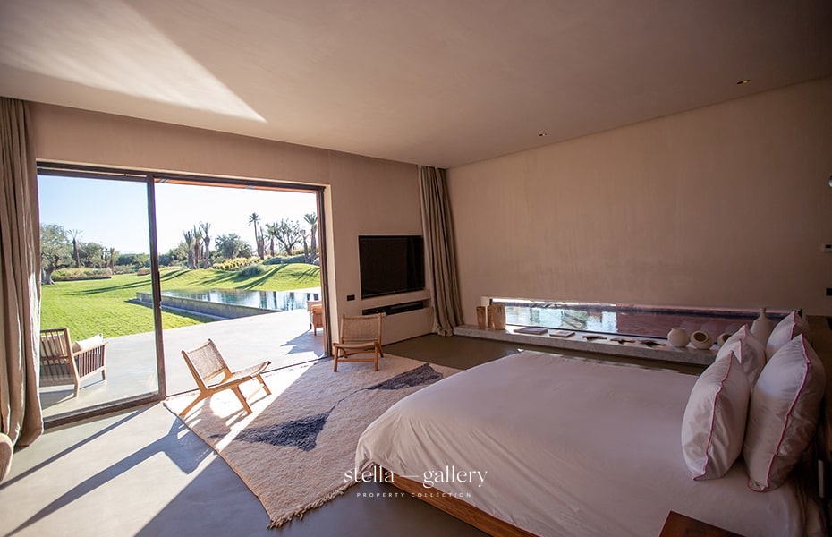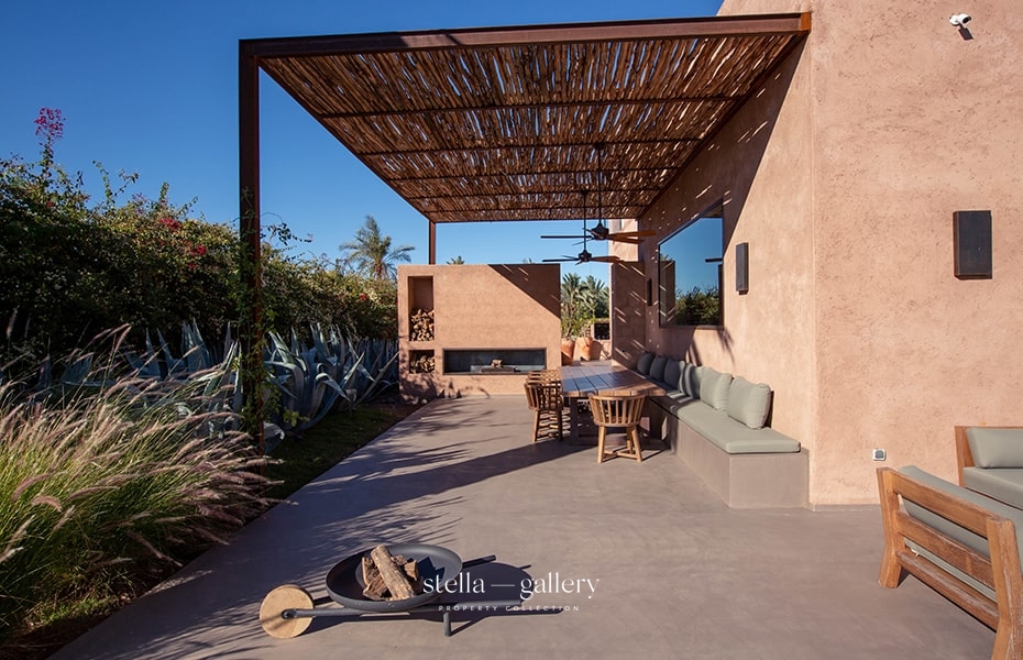 Une villa d’exception, pensée par deux architectes français qui se sont grandement inspirés de l’architecture vernaculaire reconnaissable à ses blocs de pisé de tailles et de hauteurs différentes. Ils l’ont sublimée pour créer une villa contemporaine, originale où les différents cubes offrent une intimité réelle et une esthétique certaine. Le tout ponctué de bassins d’eau qui amènent quiétude et fraîcheur.
