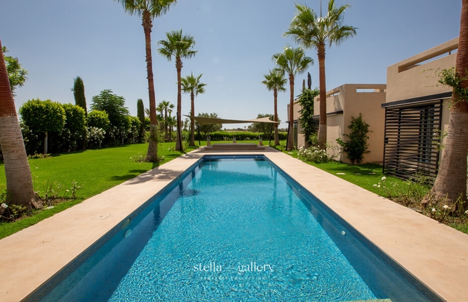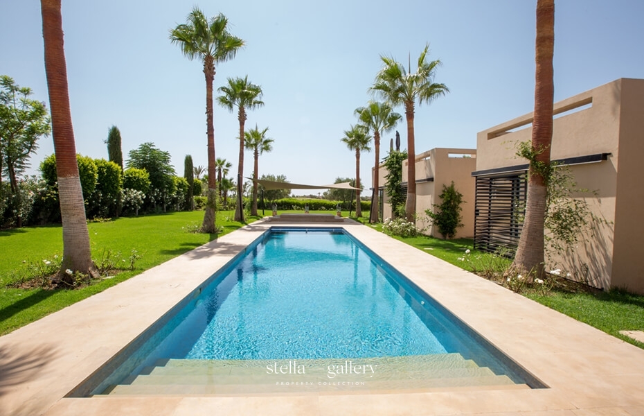 Villa de plain-pied idéalement située en 1ère ligne du golf d’Al Maaden, à moins de 10 minutes du centre-ville de Marrakech.