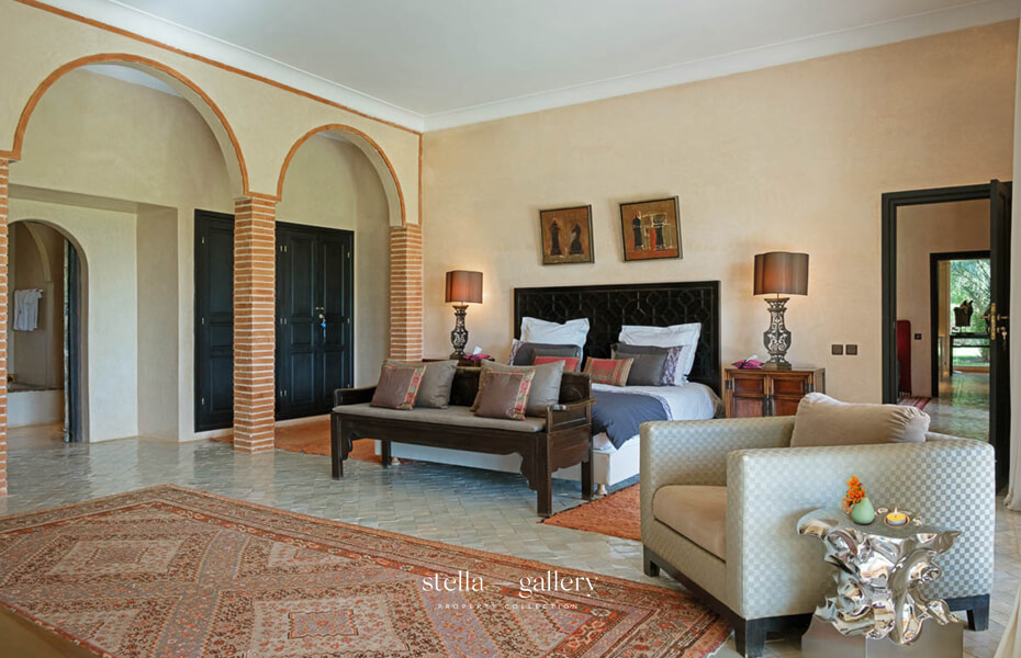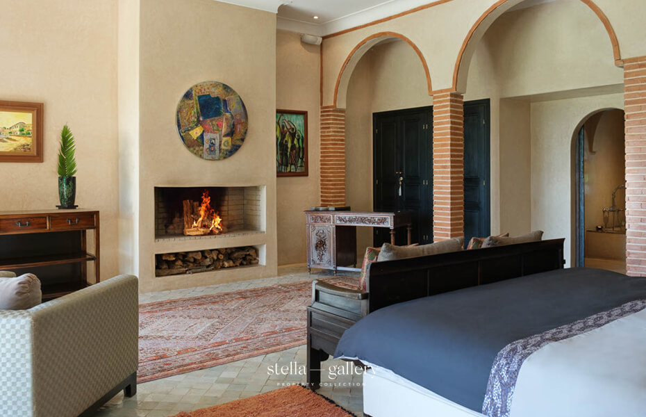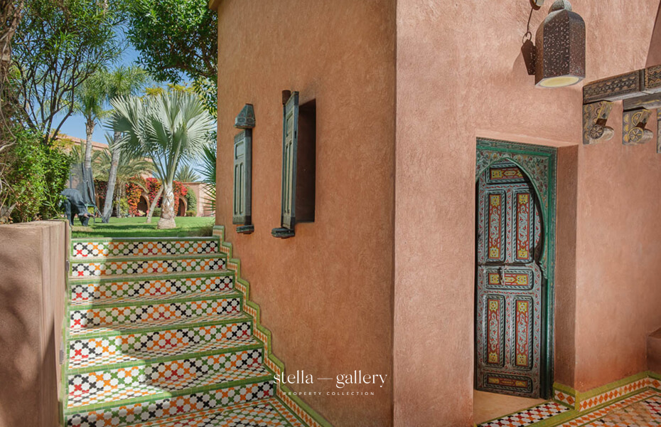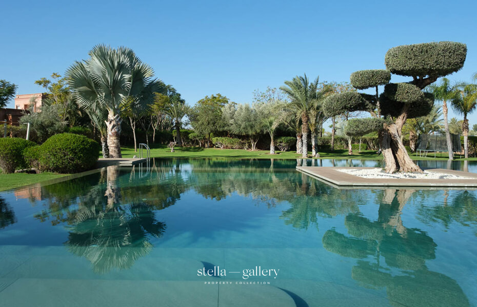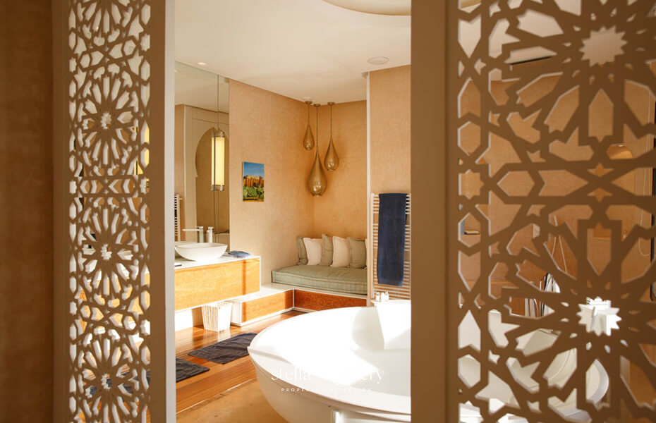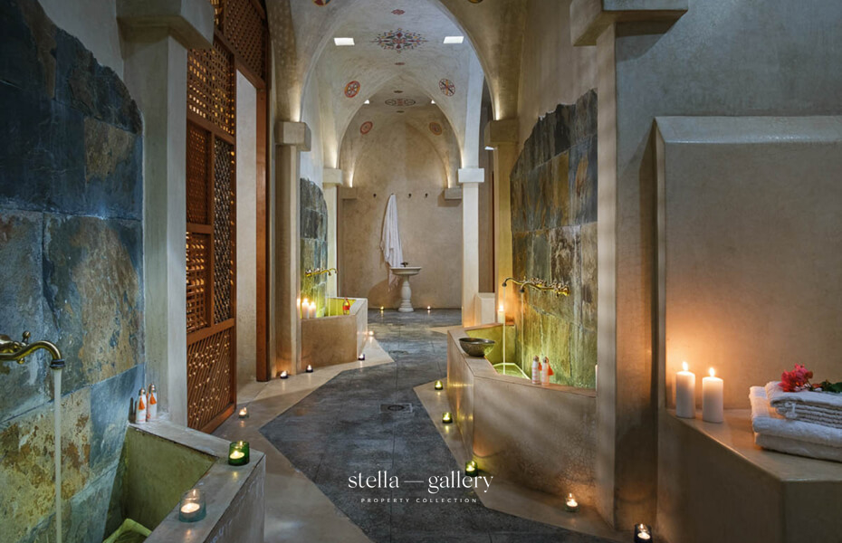 House 1 is built around a calming patio, the true heart of the home, where the gentle sound of water mingles with the delicate scents of orange blossom and roses. Spacious living areas – garden-facing lounges, billiard room, library with fireplace and XL football table, and a private cinema – strike a perfect balance between conviviality and intimacy. The traditional hammam, generous in size and refinement, is worthy of the finest palace spas, while a clay tennis court and shaded garden corners offer moments of leisure or quiet reflection.