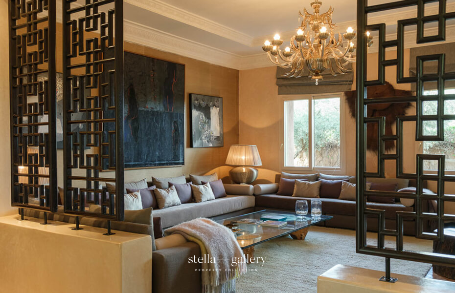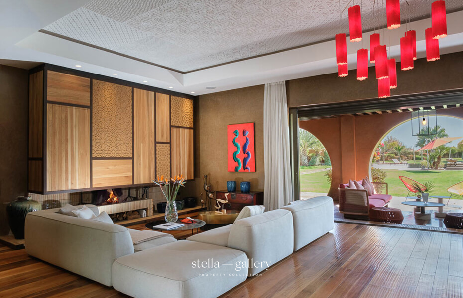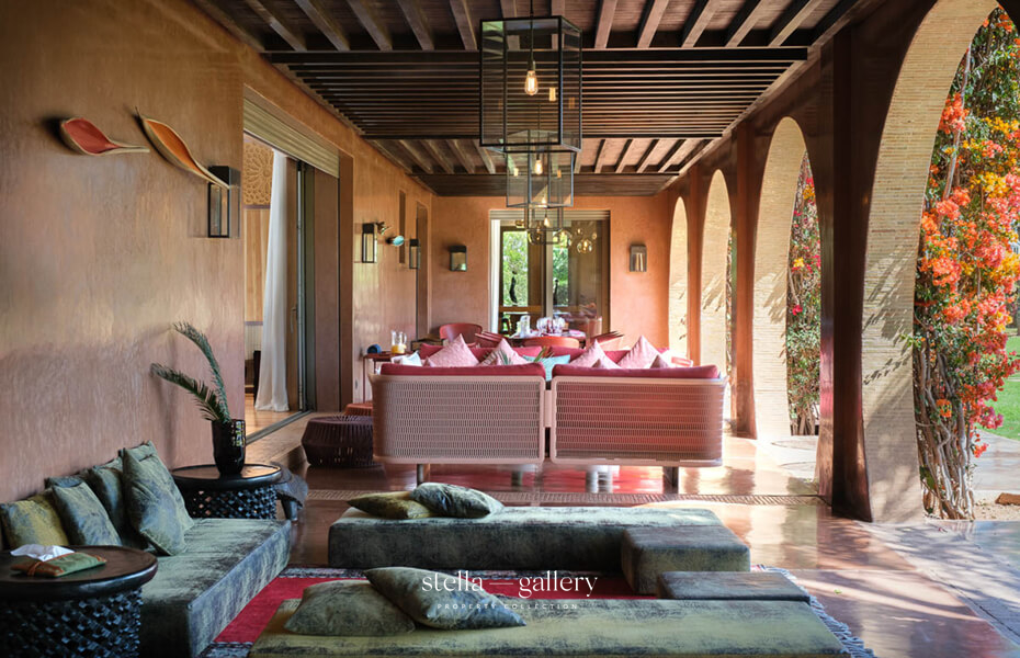 Less than thirty minutes from the medina, Villa Dar BV unfolds across two hectares of private gardens, offering a rare setting where tranquillity and comfort blend in perfect harmony. Every vista combines elegant lines, lush nature, and a serene atmosphere.