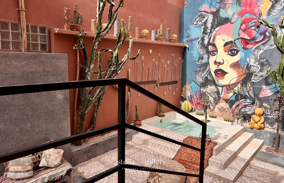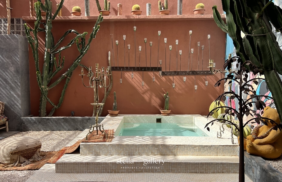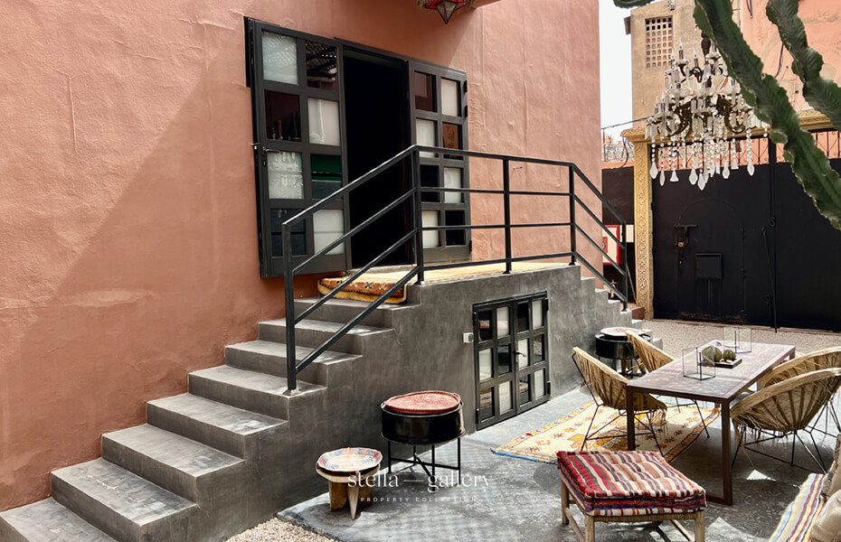 In the heart of Guéliz’s most sought-after district, this private townhouse enjoys a rare address just steps from a renowned art gallery and Marrakech’s most coveted dining spots, along a lively street filled with trendy restaurants and fashionable boutiques.