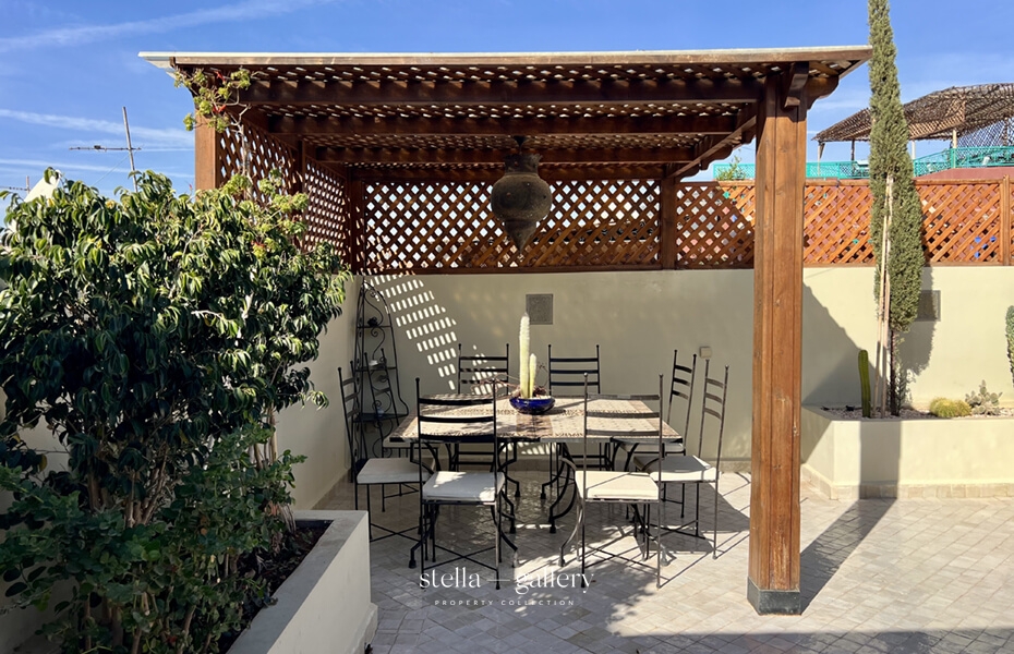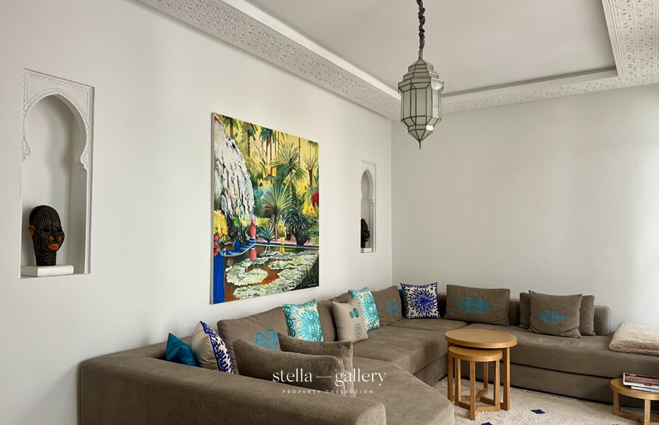 With a footprint of 148 sqm and nearly 300 sqm of living space, complemented by a roof terrace arranged as a true living area, this riad harmoniously combines architectural tradition and everyday comfort.